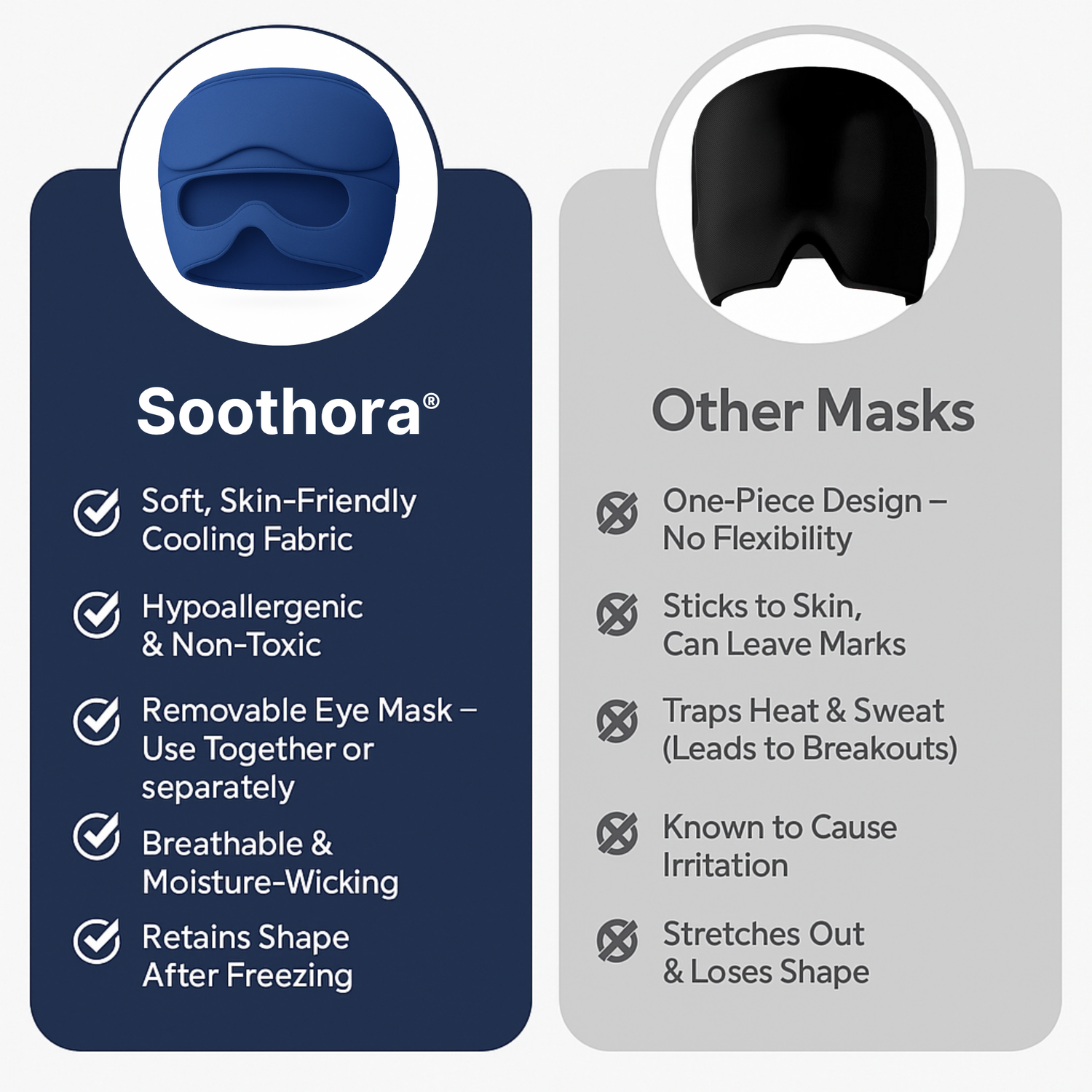Unlike old one-piece masks that trap heat and block vision, Soothora features built-in eye openings for comfort and visibility, plus a removable eye mask for blackout cooling when you want it.